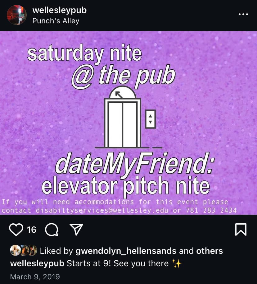 Instagram social media content for Punch's Alley, a student-run coop at Wellesley College